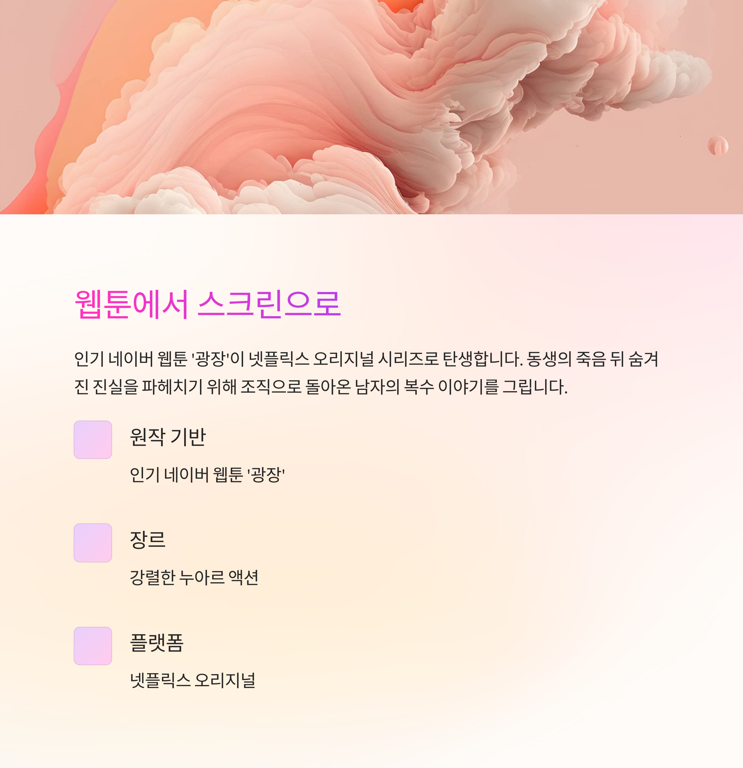 넷플릭스 광장 공개일 (개봉) 총 몇부작? 출연진·원작 정보 총정리