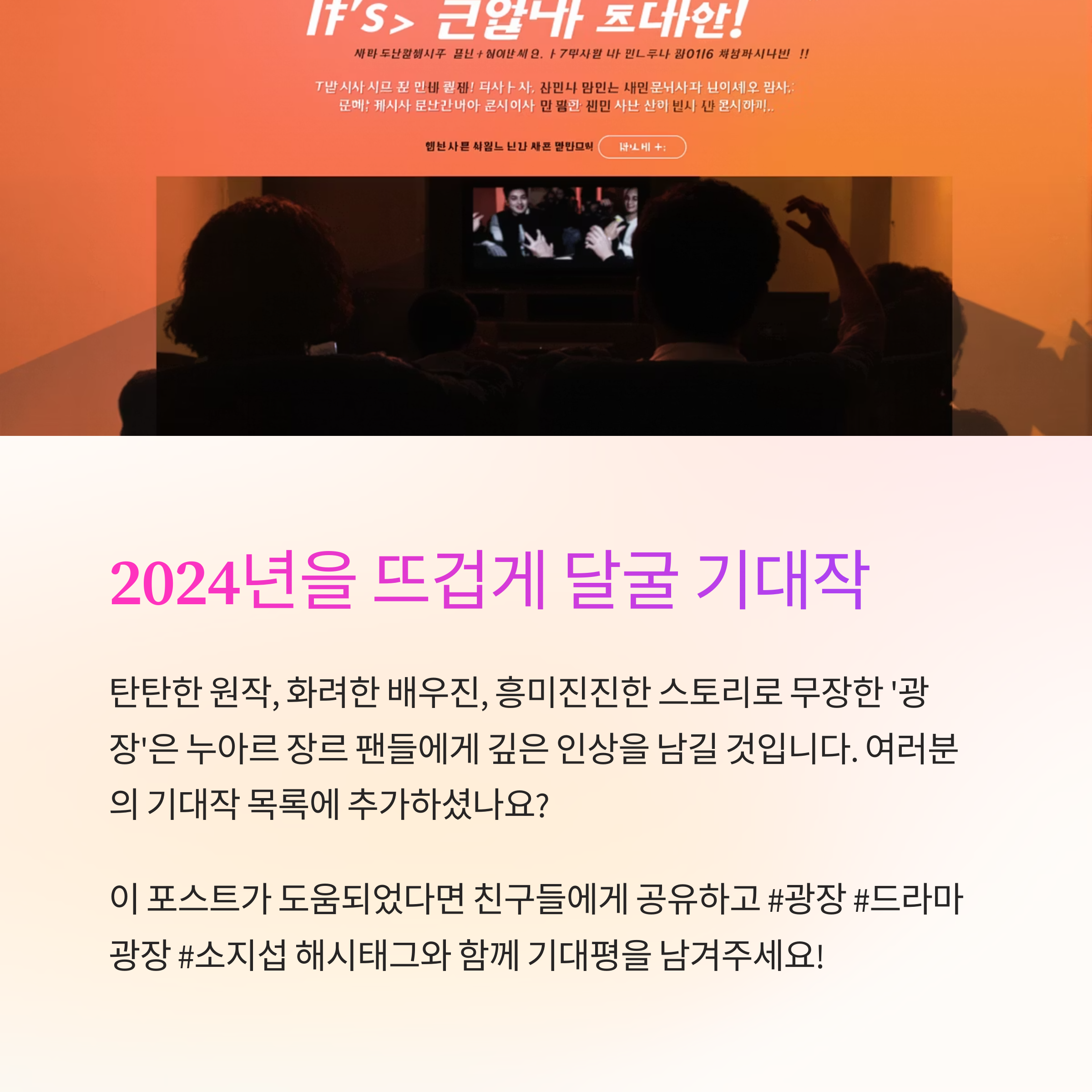 과연 "광장"이 어떤 모습으로 우리 곁을 찾아올지, 그 공개일을 손꼽아 기다려 봅니다.