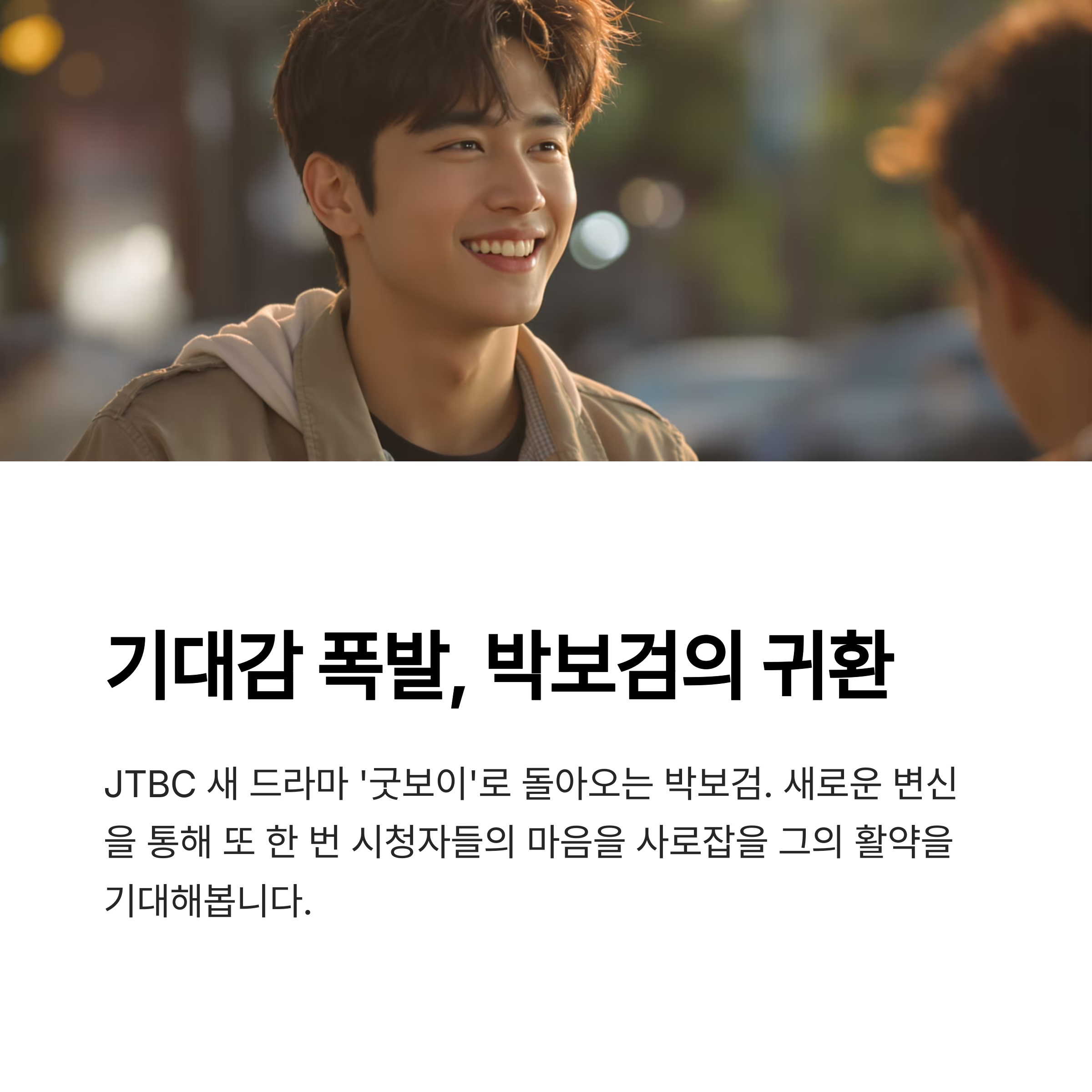 배우 박보검이 JTBC 새 드라마 '굿보이'로 돌아온다는 소식에 많은 이들이 설레고 있습니다.