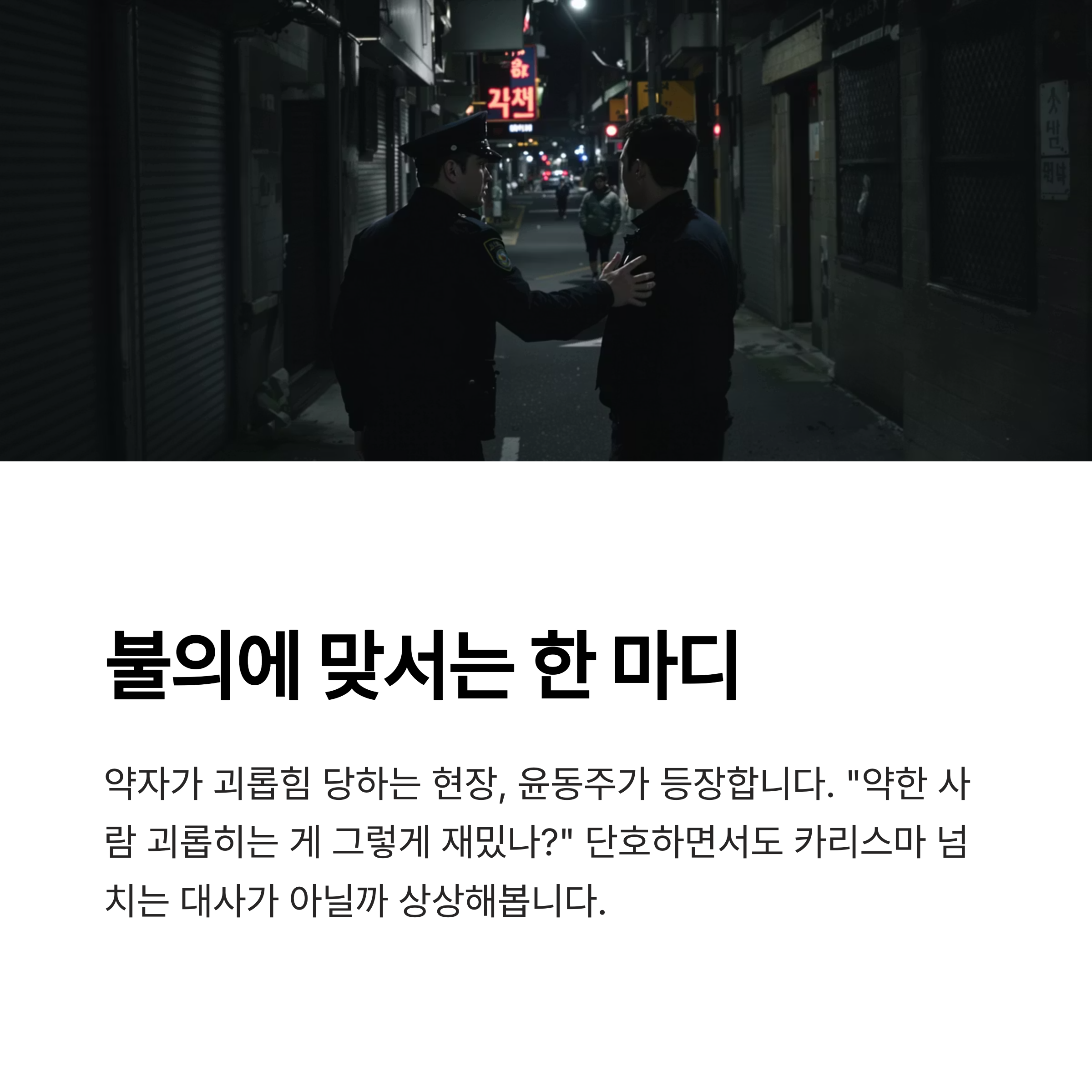 상상해봅니다. 어두운 골목길, 약자가 괴롭힘을 당하는 현장.