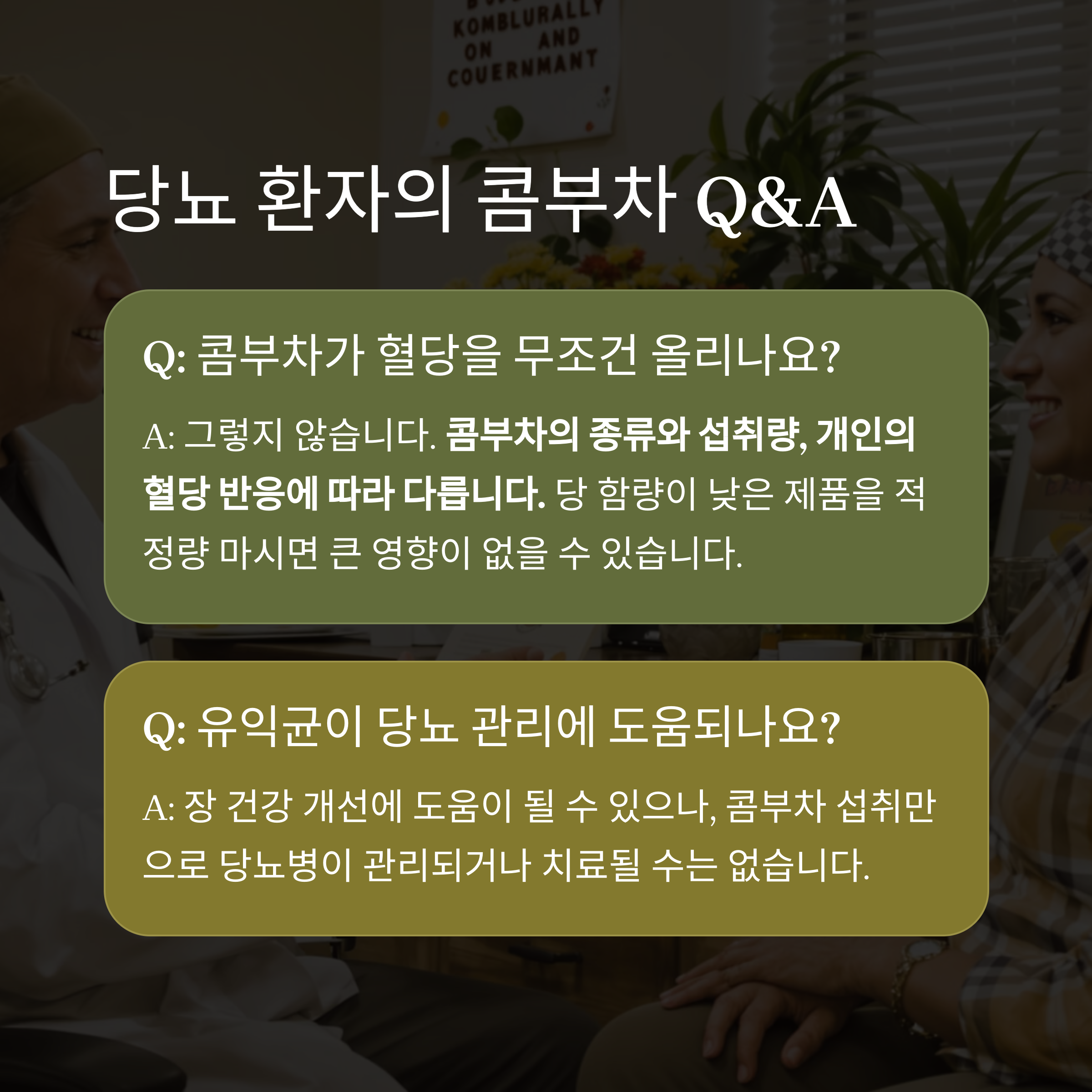 Q: 당뇨 환자가 콤부차를 마시면 혈당이 무조건 오르나요?