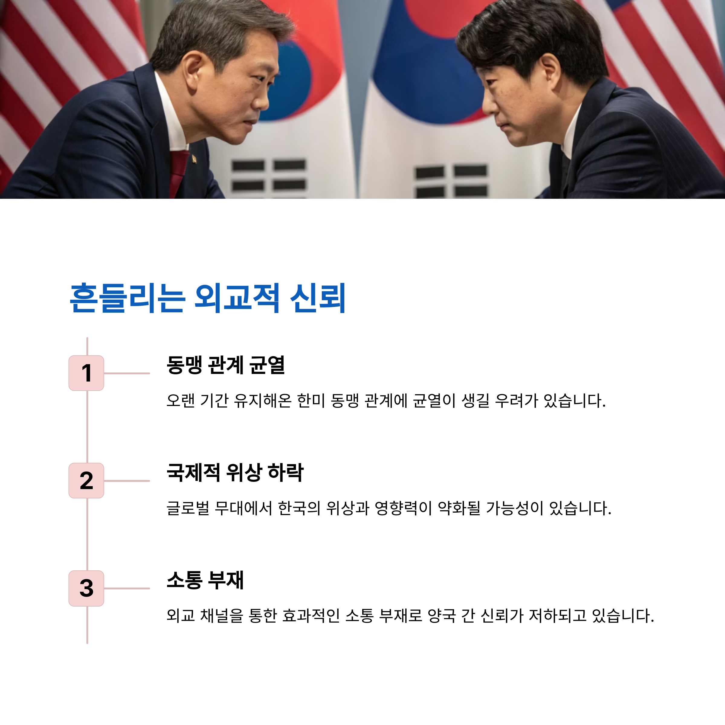 민감국가 지정은 외교적 신뢰 문제도 초래할 수 있습니다. 미국이 한국을 지정한 배경에는 민감한 기술과 정보의 관리 문제가 포함되어 있습니다. 하지만 한국은 미국과 전략적 동맹 관계를 맺고 있으며, 이번 결정이 동맹국 간 신뢰를 약화시킬 우려가 있습니다. 군사 및 안보 협력에도 영향을 미칠 가능성이 있습니다. 한국은 미국과 국방 기술 공유 및 협력을 강화하고 있지만, 이번 조치가 양국 간 방산 협력에도 부정적인 요소로 작용할 수 있습니다.