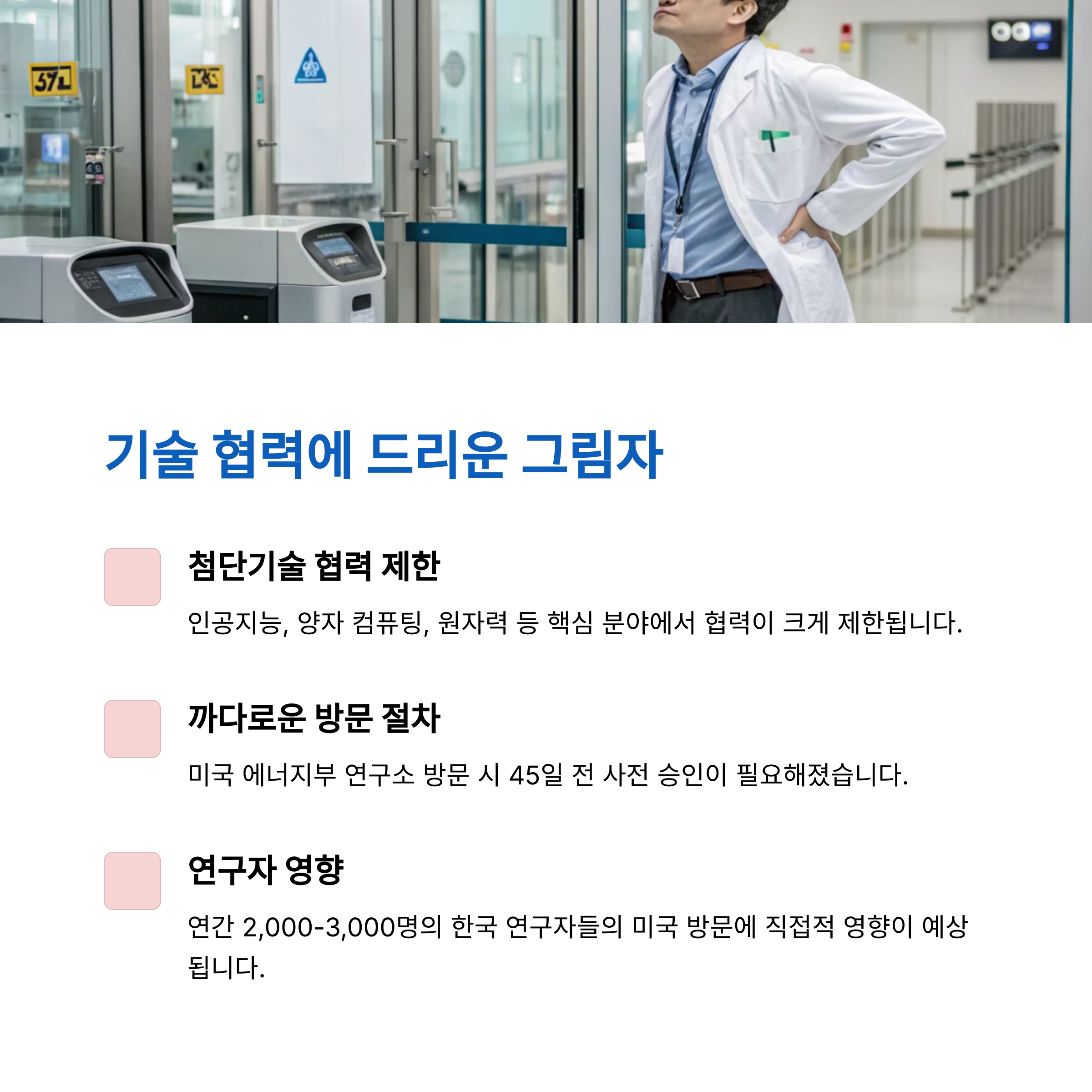 기술 협력 제한 | AI, 양자 컴퓨팅 등 연구 협력 위축 | 정부 간 협의 및 연구 보안 강화 |