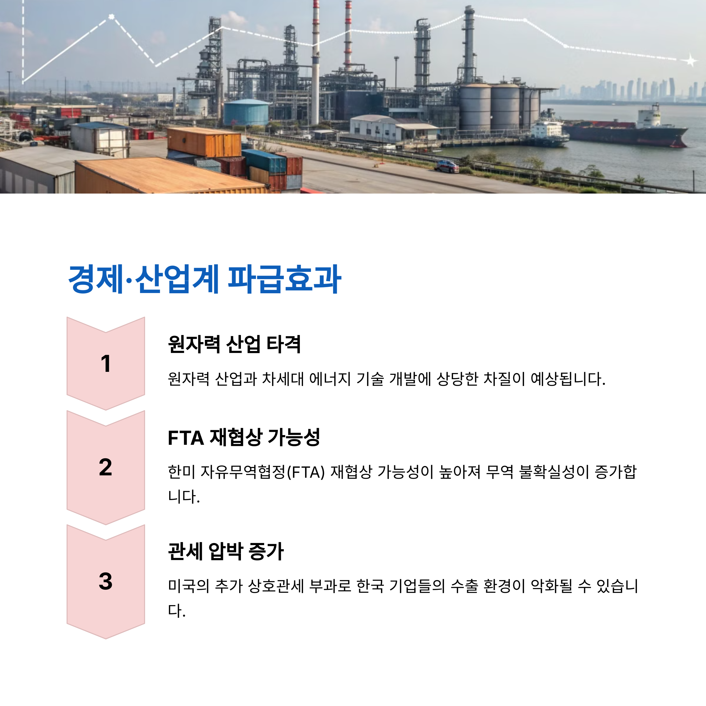 - 민감국가 지정은 특정 국가와의 기술 협력 제한을 의미합니다. - 이번 지정으로 인해 한국의 첨단 산업이 영향을 받을 가능성이 있습니다. - 외교적 신뢰가 약화될 경우, 동맹국 간 안보 및 경제 협력에도 부정적 영향을 줄 수 있습니다. - 한국 정부는 미국과의 협력을 통해 과학·기술·에너지 협력에 미치는 부정적 영향을 최소화하려 하고 있습니다.