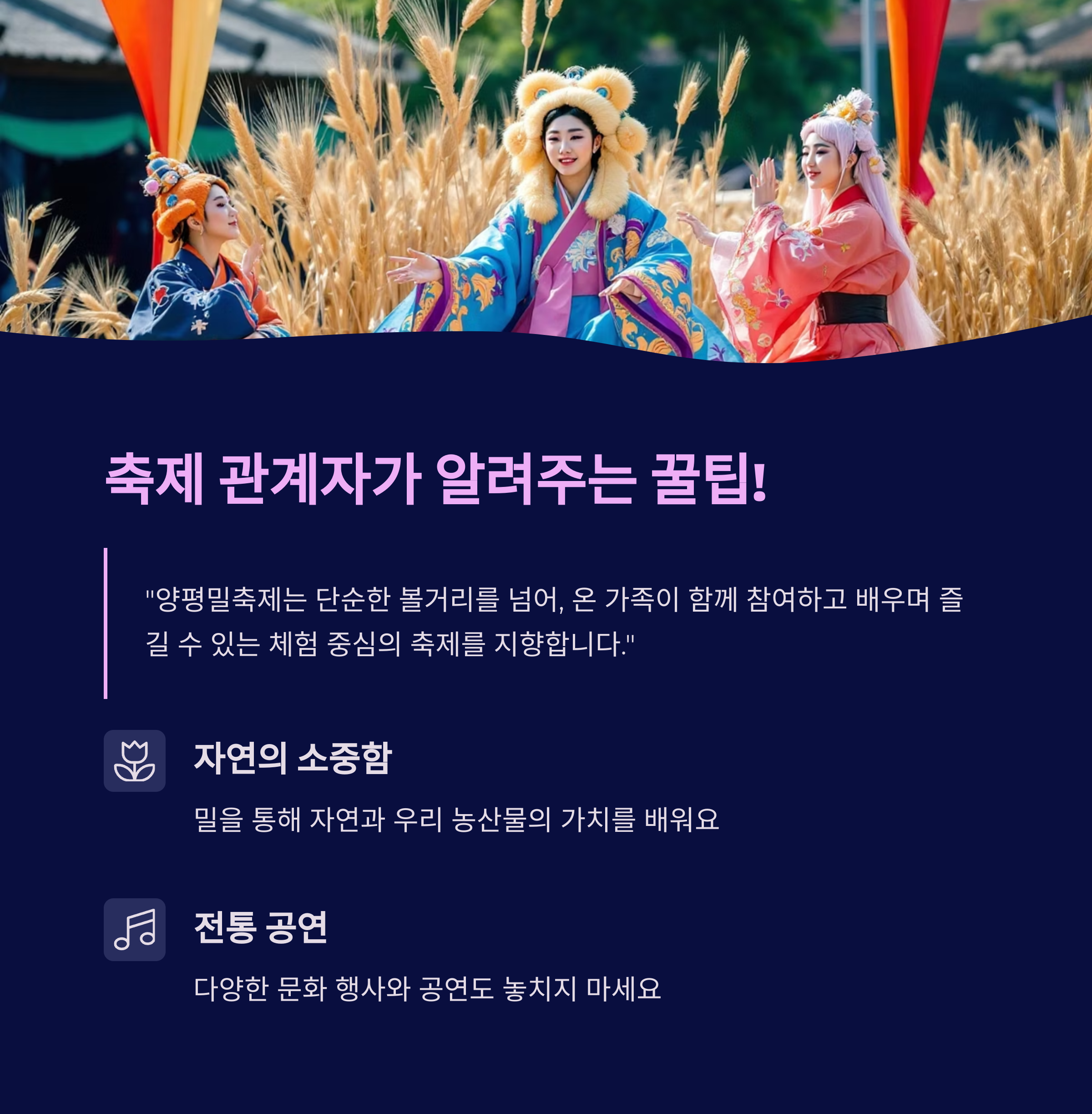한 축제 관계자는 이렇게 말했습니다. "양평밀축제는 단순한 볼거리를 넘어,
