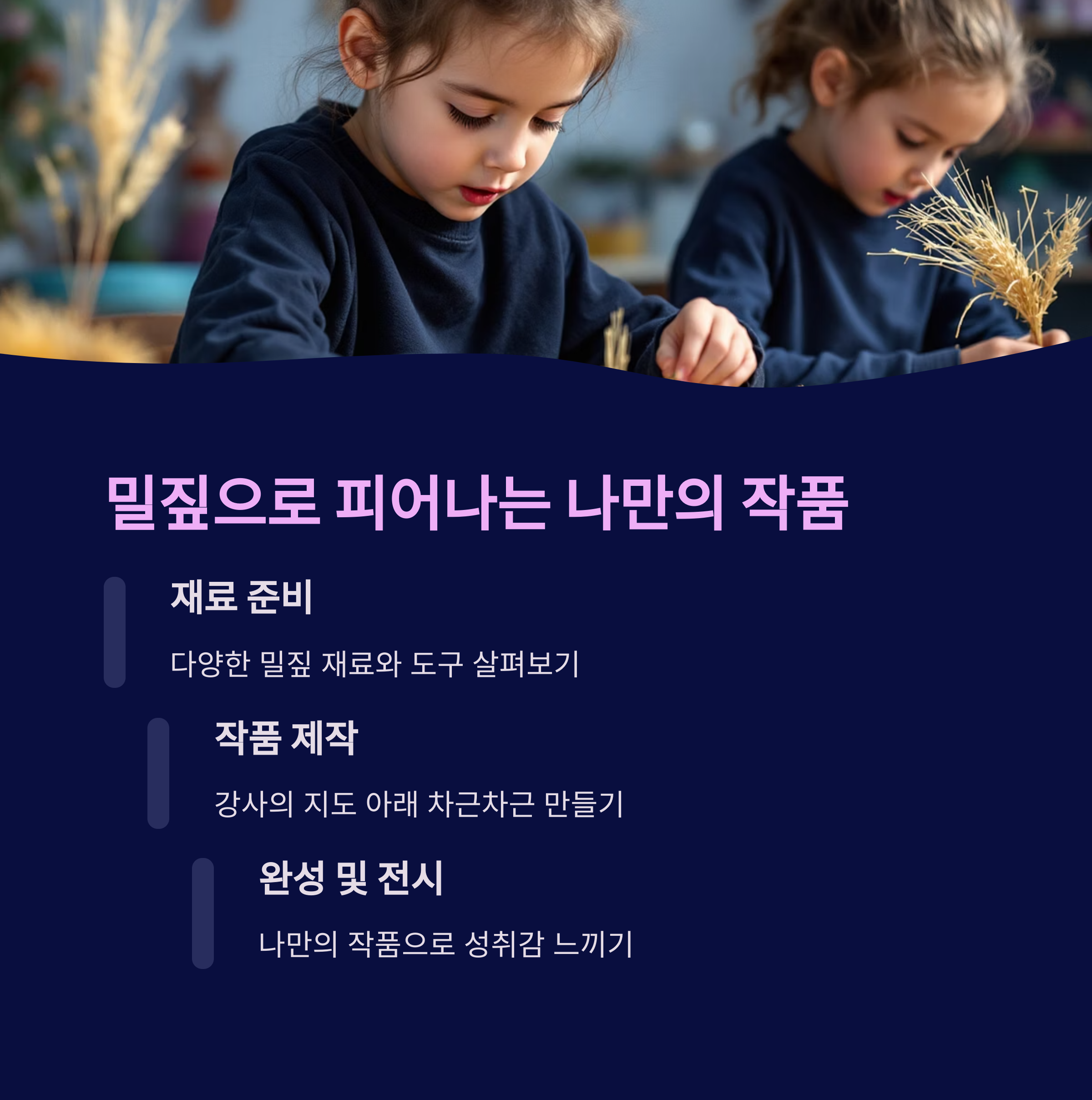 | 밀짚 공예 워크숍 | 밀짚으로 인형, 모빌, 장식품 등 만들기 | 6세 이상 | 1시간 |
