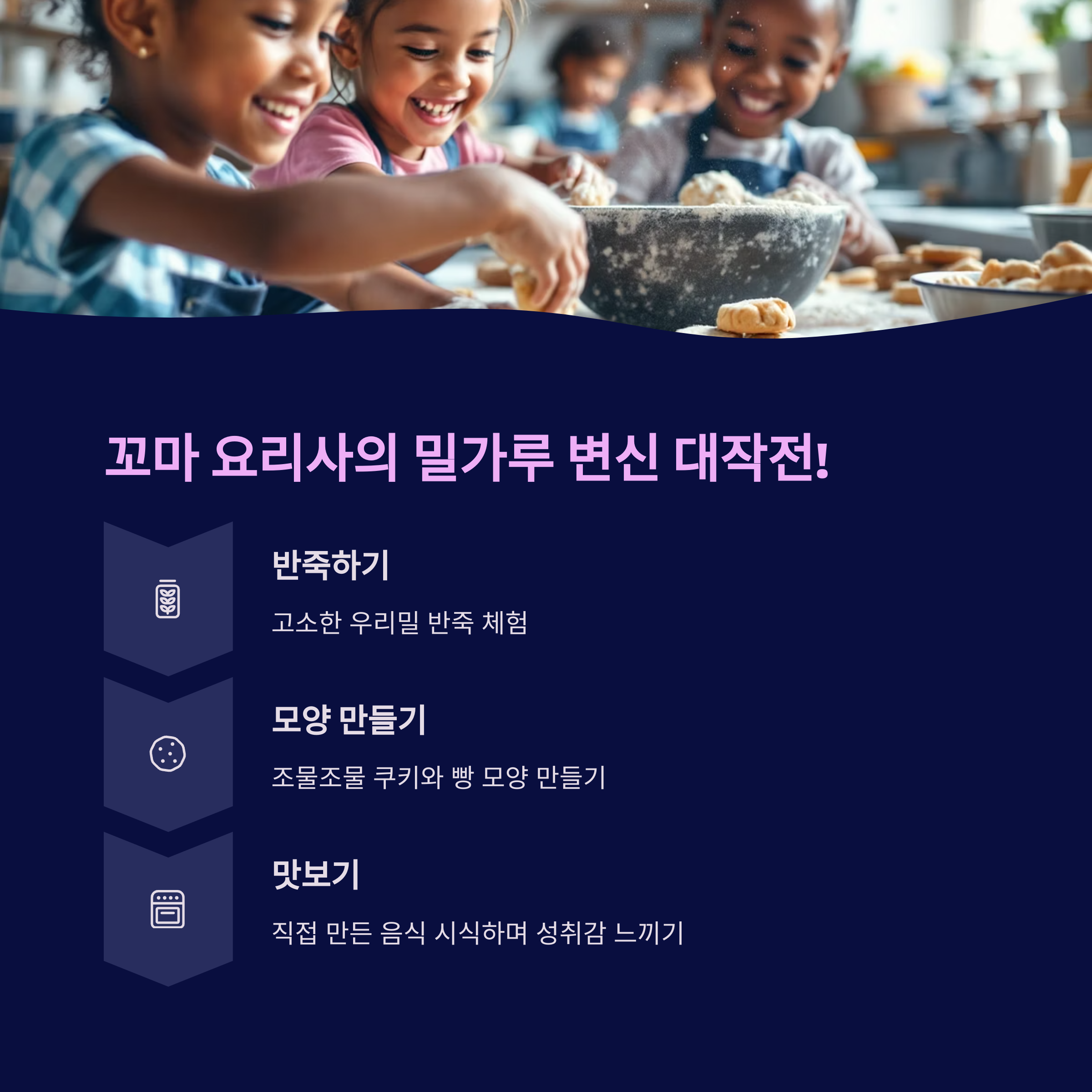 이 체험을 통해 아이들은 음식의 소중함과 만드는 즐거움을 동시에 배울 수 있습니다.