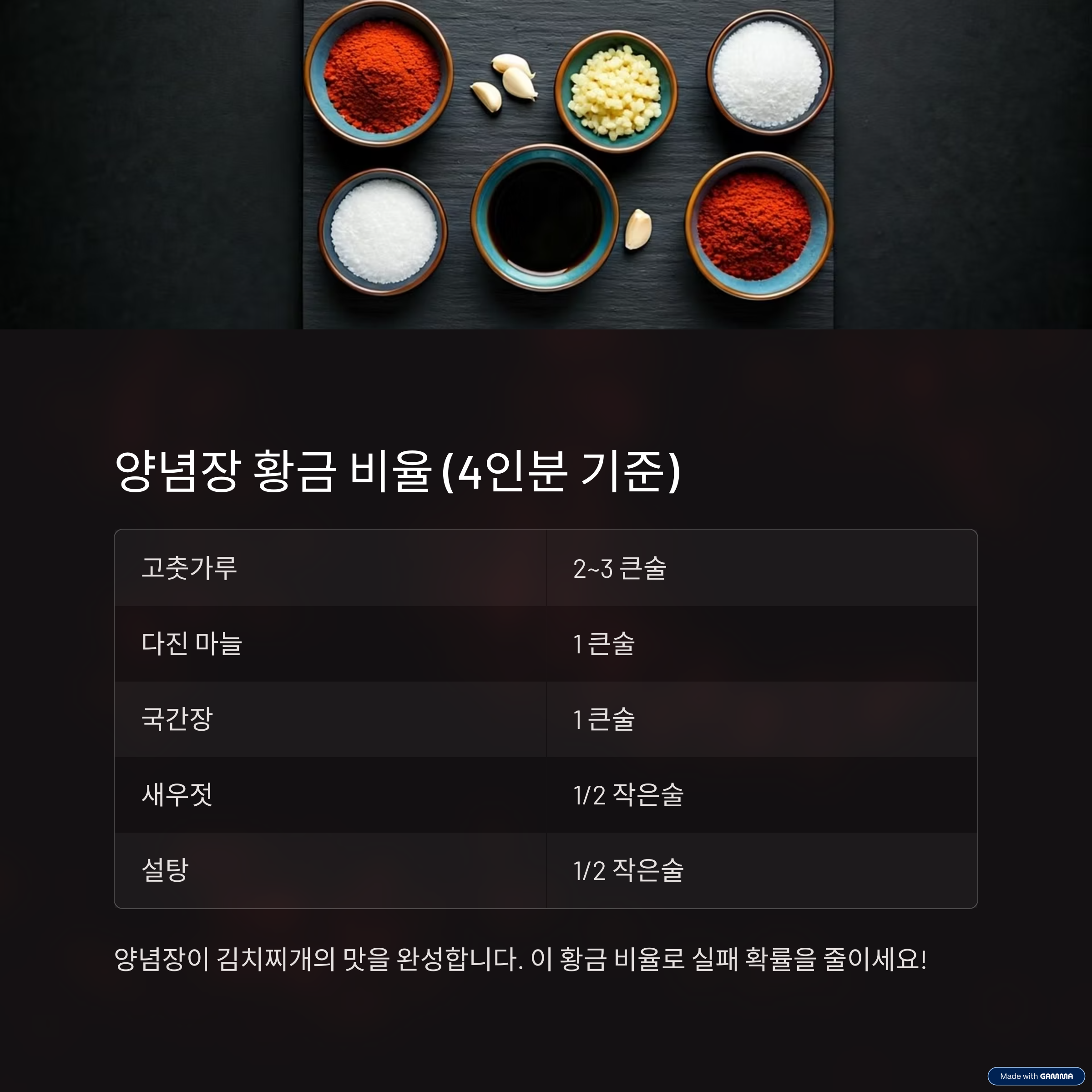 우리 집 김치찌개 맛의 화룡점정, 양념장 황금 비율