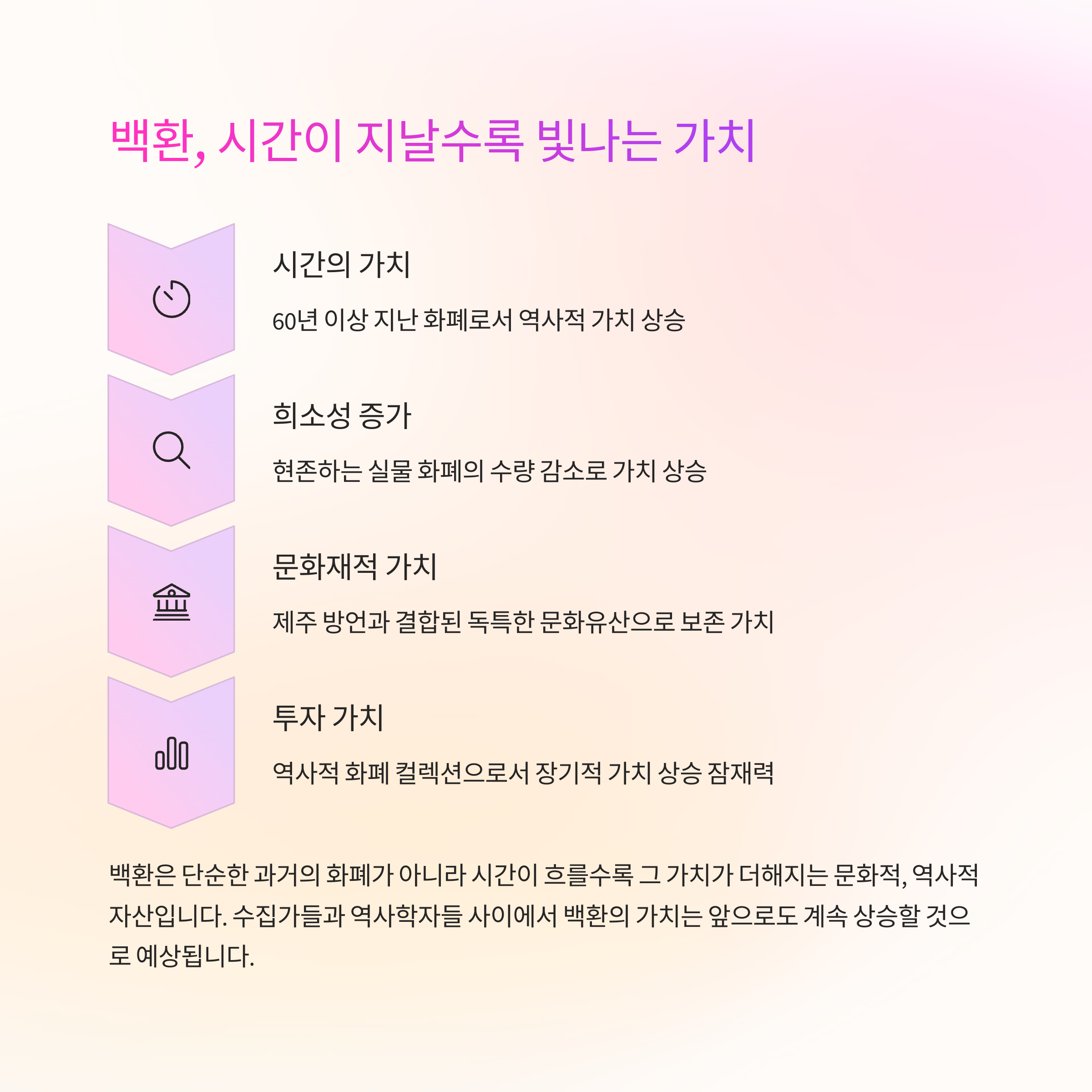 | 백환 환산가치 | 문화적 상징성 | 수집 가치 |