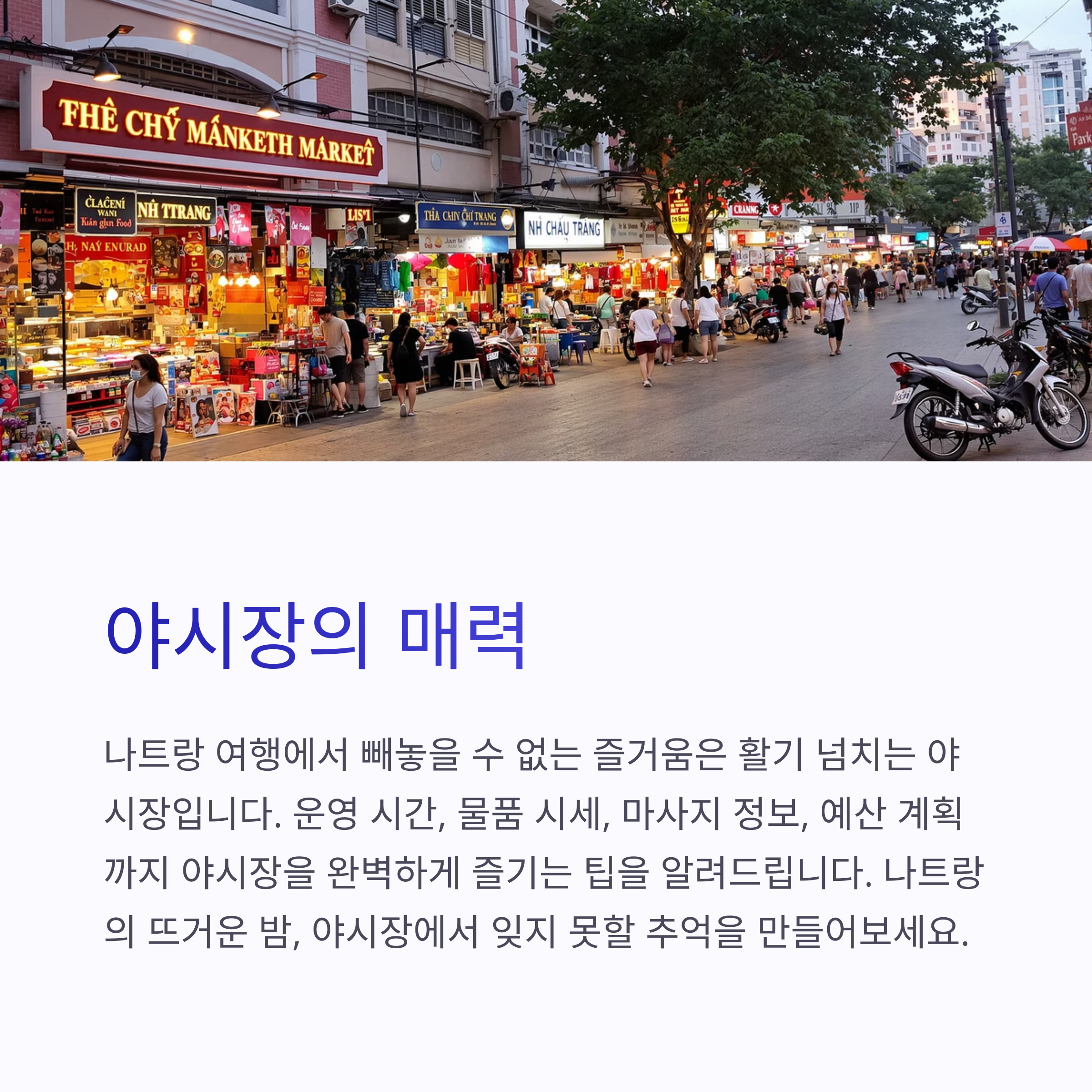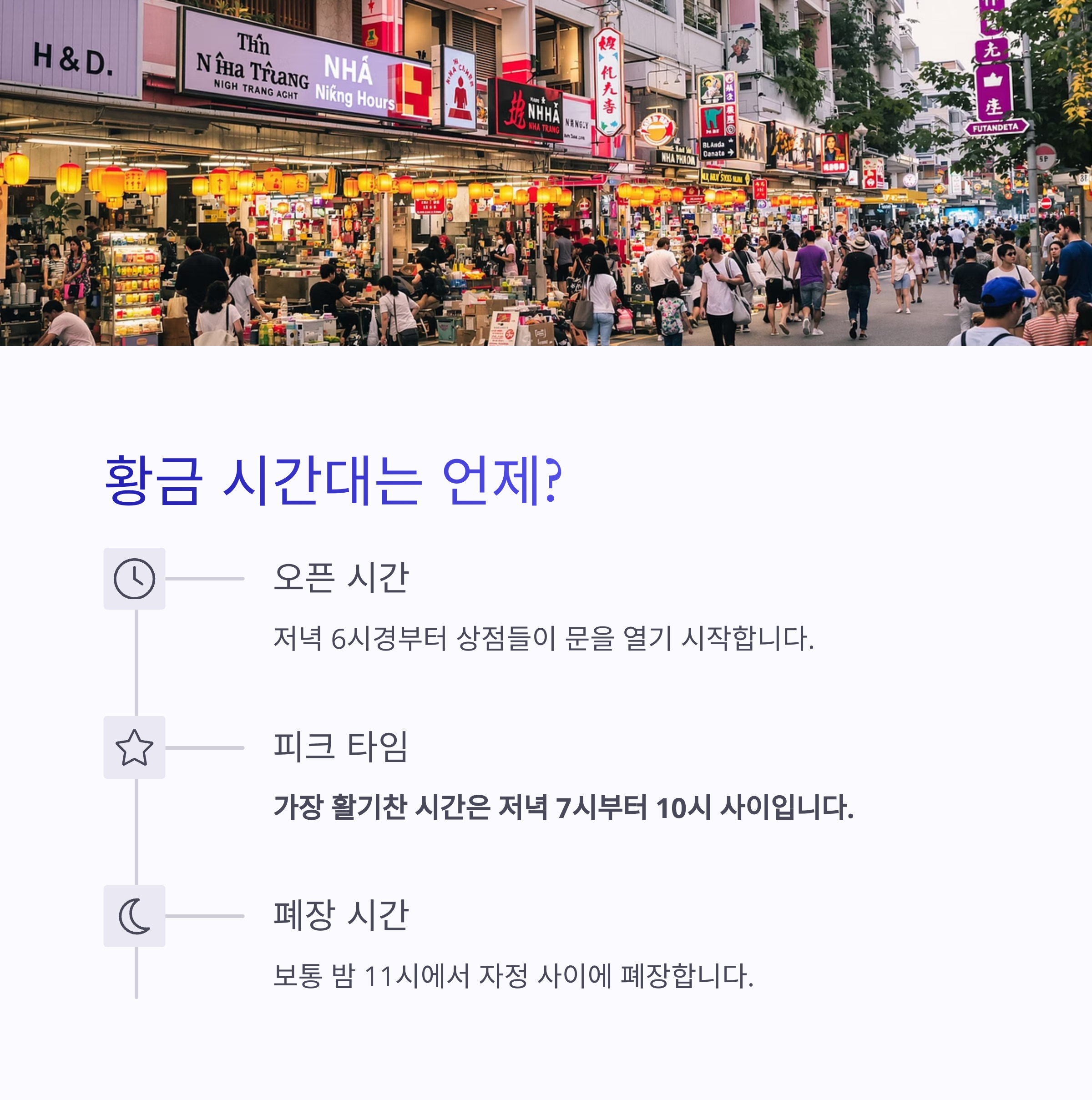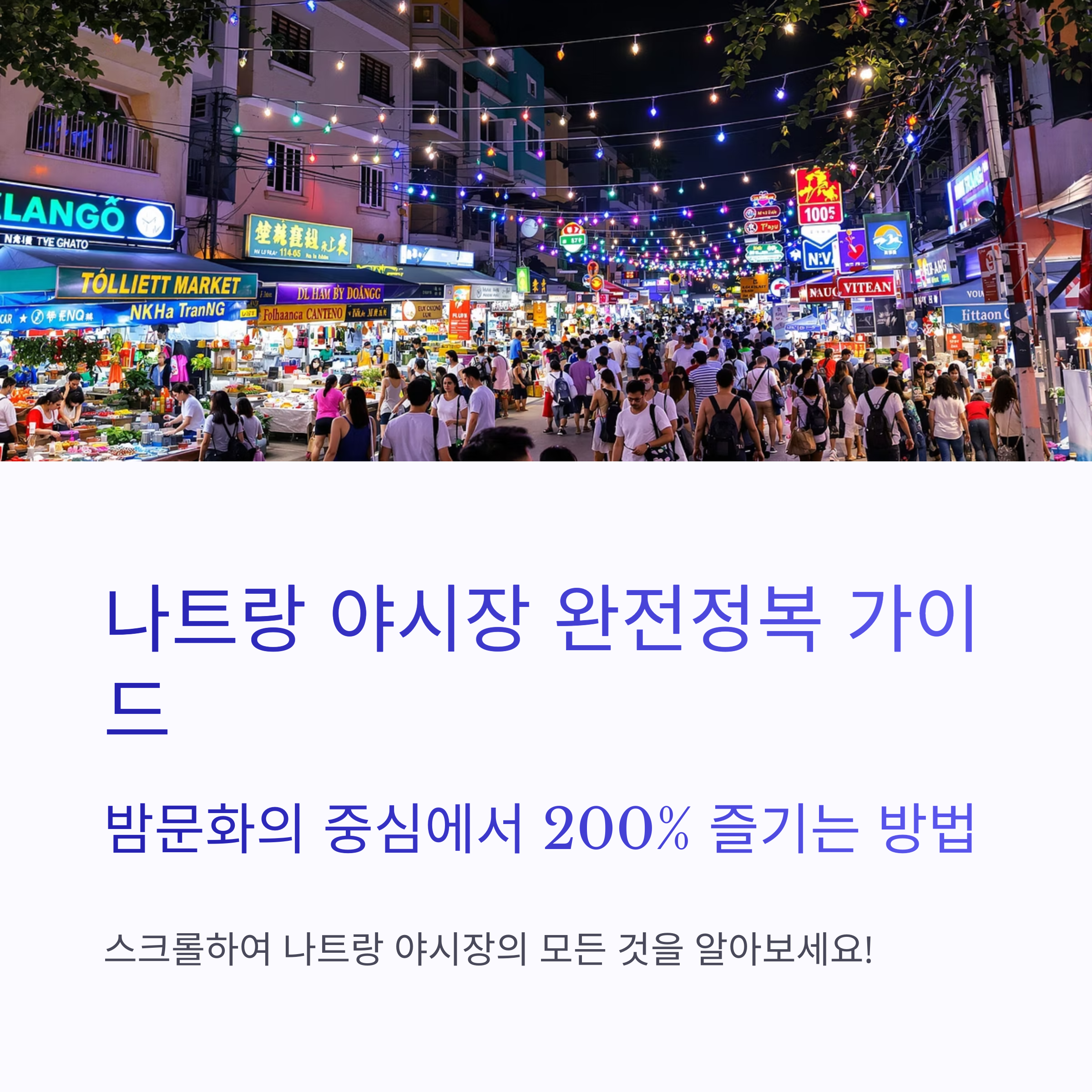 나트랑 야시장 완전정복: 시간부터 예산까지 A to Z나트랑 밤문화의 중심, 야시장을 200% 즐기는 방법은 무엇일까요?나트랑 여행에서 빼놓을 수 없는 즐거움 중 하나는 바로 활기 넘치는 야시장 방